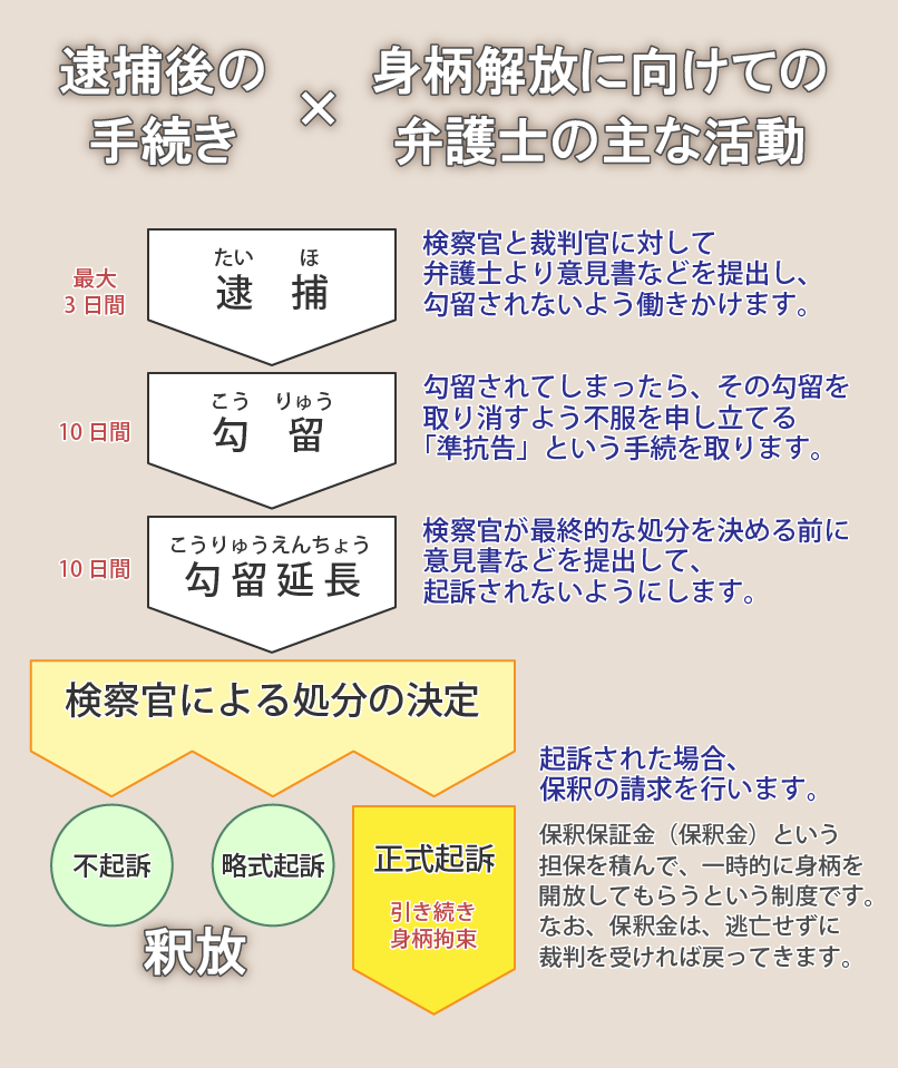 逮捕後の手続の流れと、それに対する弁護士の活動